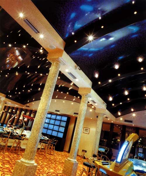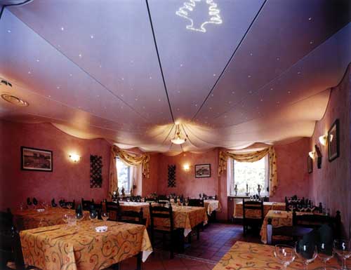 Дизайн натяжного потолка, как уже говорилось выше, может быть самым разным, а для того, чтобы сделать натяжной потолок еще более нестандартным и оригинальным можно использовать решения, позволяющие получать эффект "звездного неба" или применять так называемые "художественные потолки".