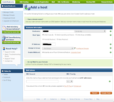 Первое что нам необходимо это зарегистрироваться на http://www.no-ip.com Сразу же после регистрации система предложит создать имя. Воспользуйтесь этим предложением. Очень полезно ;)