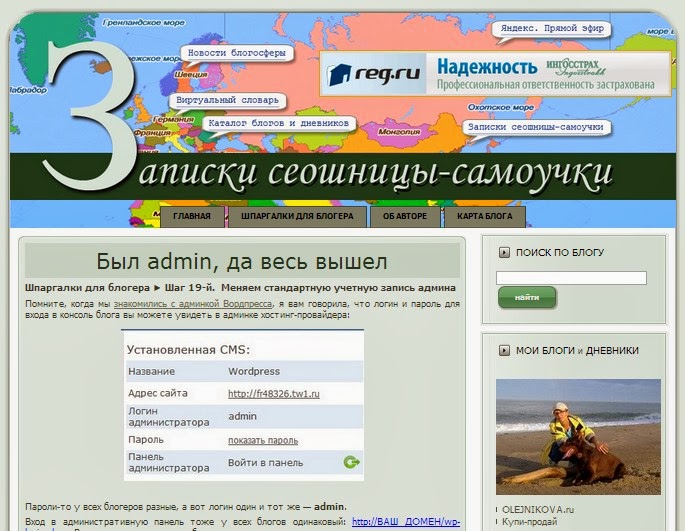 Продолжаем работу над тестовым блогом. Сегодняшняя шпаргалка называется "Как изменить в Вордпрессе стандартную учетную запись админа".