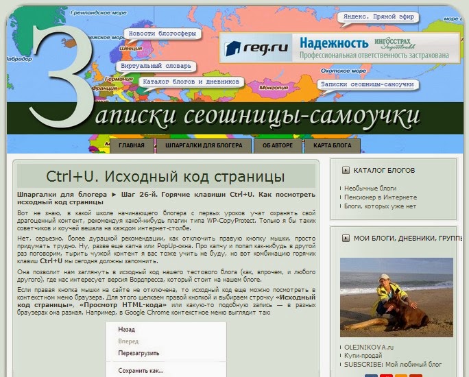 Шпаргалки для блогера 'Горячие клавиши Ctrl+U. Исходный код страницы'