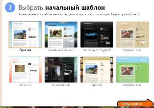 Кликаем Продолжить и выбираем для своего блога шаблон.
