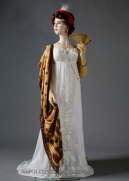 Платье – ничто, аксессуары – всё. Представьте себе даму в белом платье, пусть даже из тончайшего муслина, с вышивкой белым по белому, но без красного тюрбана, золотистой шали, перчаток, веера и украшений. В таком случае только собственная красота могла быть сделать её эффектной. Но если вы не Тереза Тальен или Жюли Рекамье, признанные красавицы эпохи, лучше не полагаться на красоту, а дополнить наряд яркими деталями.