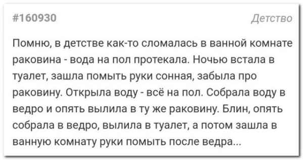Я была пай-девочкой в школе, пить начала только в общаге универа. И поэтому мама до сих пор вспоминает историю 10-летней давности, которая едва не стоила ей инфаркта. Бдительная мама до утра ждала меня у окна с выпускного, а потому чуть не упала в обморок, когда около подъезда остановился милицейский (тогда ещё) УАЗик, и два мента под белы рученьки вынули из него меня. Просто я была пай-девочкой, боялась одна ночью возвращаться через весь город и вежливо попросила ментов довезти меня до дома)) =================