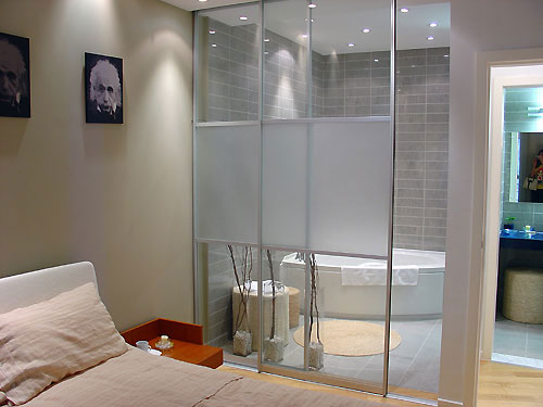 Двери в санузел могут быть не только распашными, но и раздвижными, способные сэкономить полезную площадь. В этом случае удачным решением будет использование металлического короба, позволяющего убрать двери в простенок между ванной и туалетом.