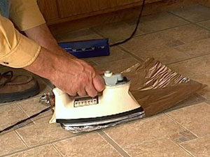 При образовании пузырей нужно в первую очередь выпустить скопившийся воздух - проколоть шилом отверстия, разгладить линолеум вокруг них и положить на это место груз. При повторном появлении пузырей на вздувшееся место кладут мешок с горячим песком либо проглаживают это место через бумагу горячим утюгом. Так поступают в том случае, если линолеум уложен на горячей битумной или на резинобитумной мастике, которая плавится при нагревании. Под вздувшиеся участки можно ввести шприцем растворитель для