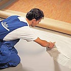 толщины по всей поверхности основания, линолеум тщательно приглаживают и пригружают.