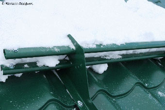 Итак, снегу на кровле быть. Однако если его выпадет слишком много, тогда вся эта масса может сползти с крыши. А масса, как мы помним, совсем не маленькая. Поэтому необходимо заранее, при возведении кровли, позаботиться о безопасности людей и сохранности имущества: например, о припаркованных у дома автомобилях. Для этой цели служат трубчатые снегозадержатели,
