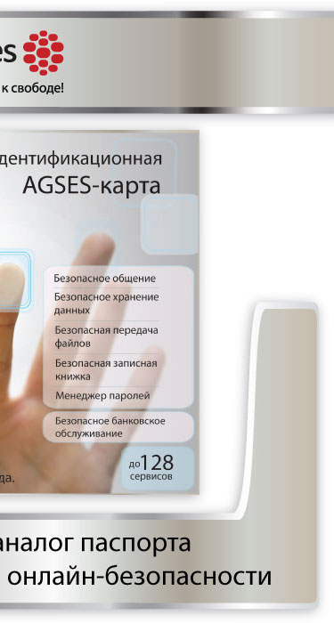 Созданная швейцарскими учеными биометрическая идентификационная AGSES-карта обеспечивает высочайший уровень безопасности электронных операций. Это персональное мобильное устройство размером с банковскую карточку оснащено сканером отпечатка пальца и хранит идентификатор личности владельца в виде биометрических моделей. Карта имеет уникальный номер и предназначена для подтверждения доступа и электронных операций путем сверки отпечатков пальцев владельца. AGSES-карта обеспечивает независимую работу со 128 операторами систем и приложений, что позволяет свести большинство цифровых идентификаторов в один. Единственными ключами пользователя становятся его отпечатки пальцев. Утрата AGSES-карты не влечет за собой проблем, так как никто, кроме владельца, не может воспользоваться устройством.