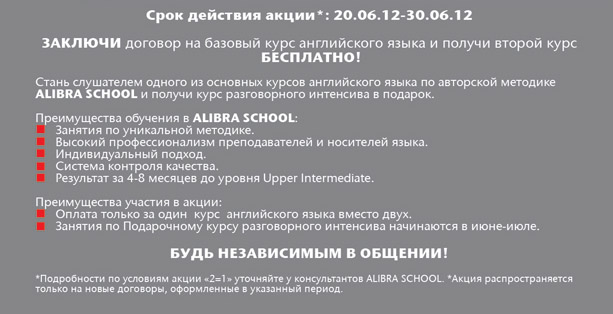 Акция "2=1". Английский от ALIBRA SCHOOL по эффективной методике. Второй курс в подарок.