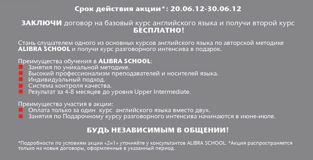Акция "2=1". Английский от ALIBRA SCHOOL по эффективной методике. Второй курс в подарок.
