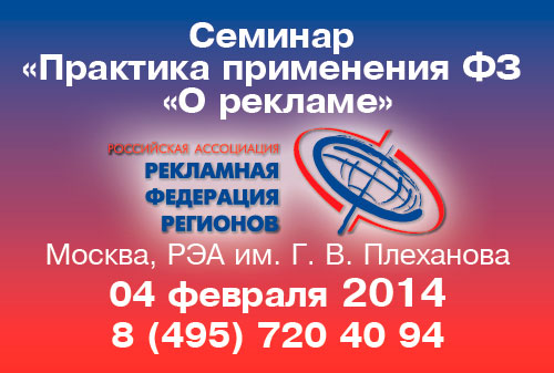 Ассоциация «Рекламная Федерация Регионов» приглашает медийщиков и продавцов рекламы принять участие в юридическом семинаре на тему «Практика применения ФЗ «О рекламе».