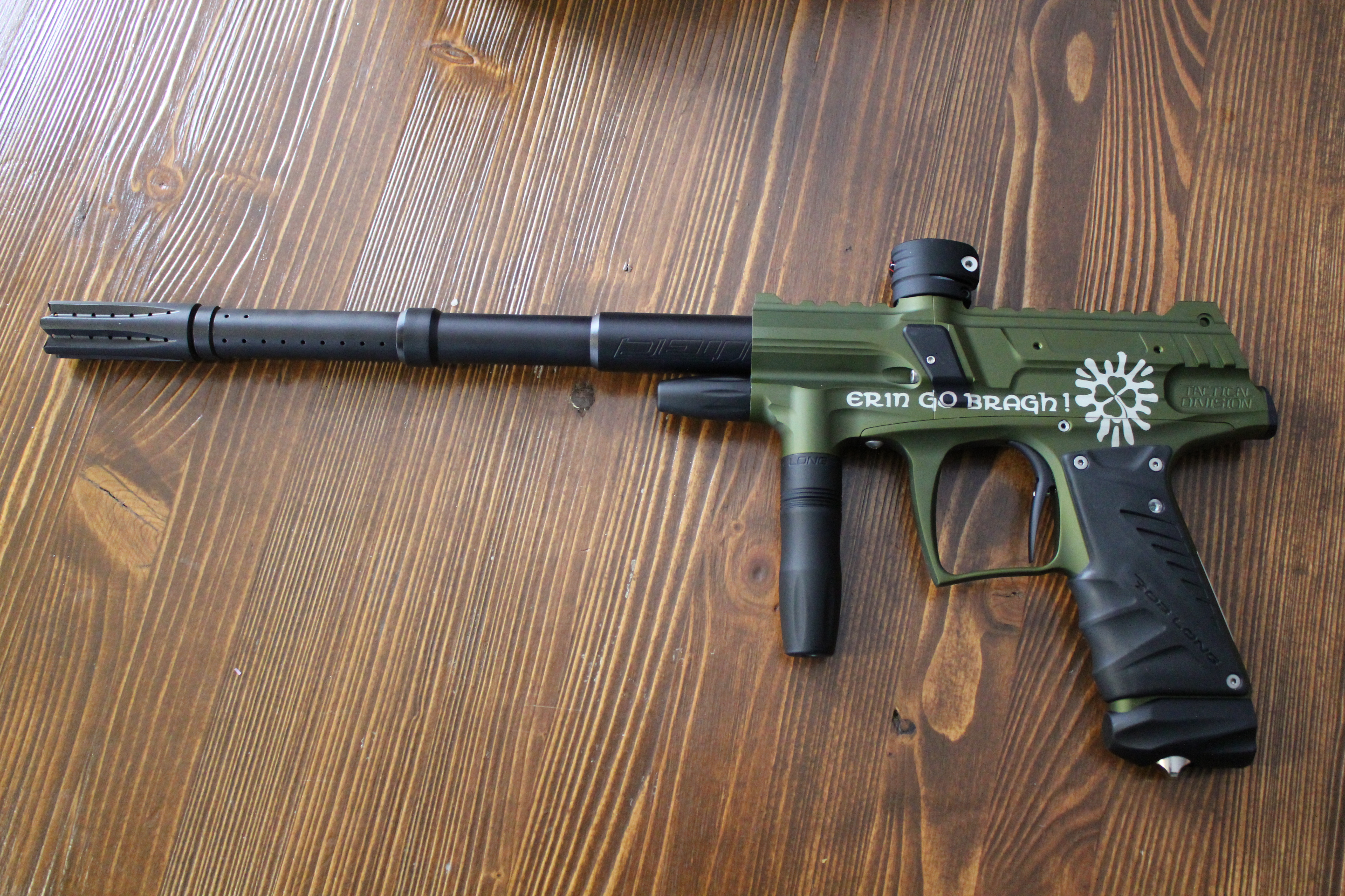Турнирный сезон 2013 года будет серьёзным вызовом для тактического состава ПК «Ирландцы». Достойно принять этот вызов нам поможет новое снаряжение, а конкретно — маркера Bob Long G6R Tactical и Marq Victory Pump, партия которых с лазерной гравировкой нашей эмблемы была специально изготовлена фирмой мистера Лонга.