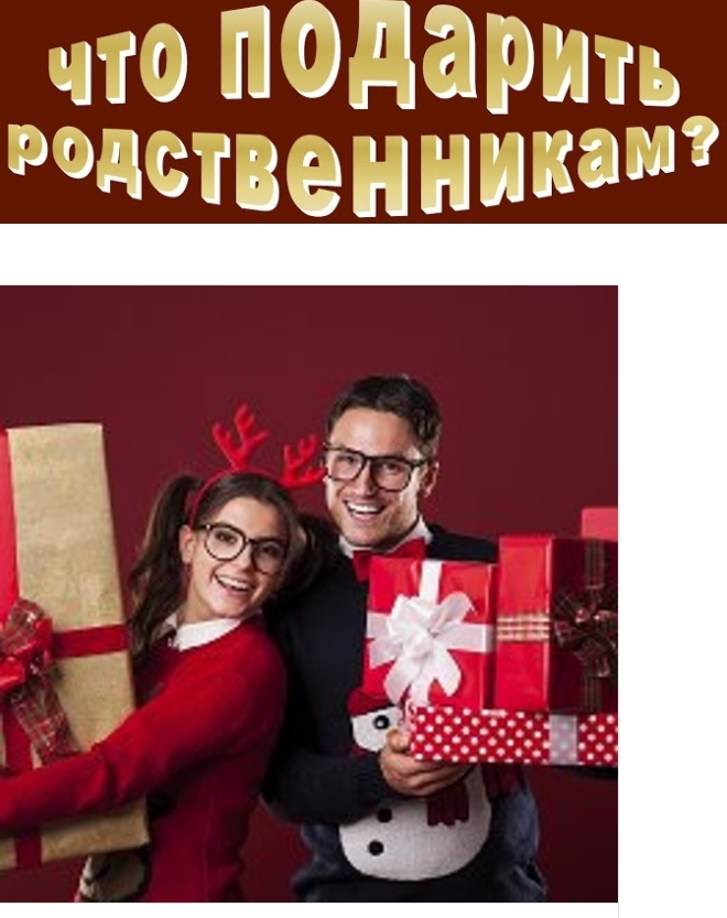 Что подарить родственникам Подарки родственникам, как и подарки всем остальным людям, необходимо делать с душой от самого чистого сердца, и тогда ваше доброе расположение и тепло обязательно вернутся к вам сторицей, чтобы сделать вас по-настоящему счастливыми