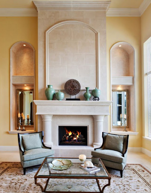 Порталы каминов, украшенные пилястрами, станут великолепным декоративным украшением интерьера, которое будет акцентировать на себе внимание.