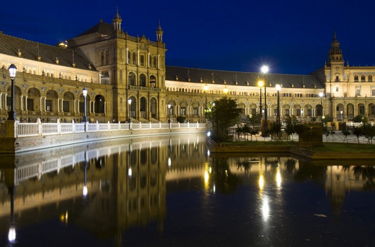 Площадь Испании — захватывающий пример ренессансного Возрождения, популярного архитектурного стиля в Испании. Её здания были спроектированы Анибалем Гонсалесом, известным испанским архитектором начала 20-го века. Он использовал комбинацию Ар-деко и архитектурных стилей Neo-Mudejar. Большое окружающее площадь полукруглое здание символизирует объятия между Испанией и ее бывшими колониями. Площадь выходит на реку Гвадалквивир — самую большую судоходную реку Испании, по которой колонизаторы начинали свой путь к открытию новых континентов.