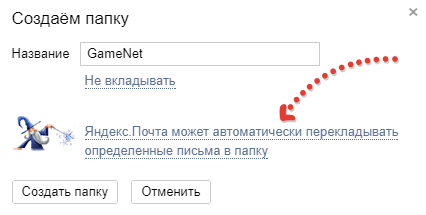 Для этого в окне создания папки нажмите “Яндекс.Почта может автоматически перекладывать …”.