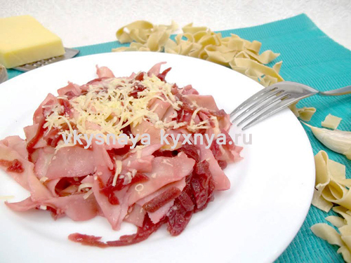 Макароны со свеклой и сыром