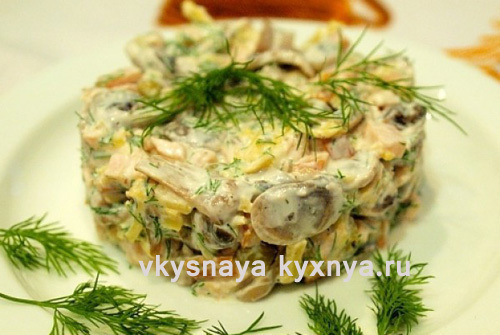 Салат с курицей, грибами и ананасами