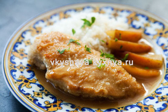 Друзья, яблоки великолепно уживаются с любым мясом, а что касается куриных грудок, то фрукты придадут им приятную кислинку и особый аромат