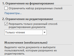 В программе Word имеется встроенный функционал для ограничения редактирования обоими этими способами, с помощью которого вы можете запретить вносить изменения в документ.