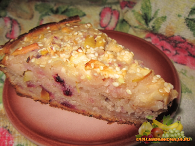 Нежный яблочный пирог с иргой и кунжутными семенами