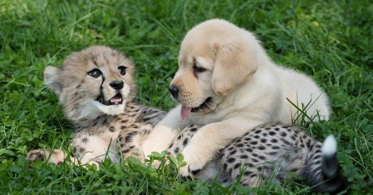Гепарды — настоящие хищники, которые вызывают страх одним своим взглядом. Несмотря на это, дикие кошки очень застенчивые и замкнутые животные. Чтобы они меньше нервничали, в зоопарке Сан-Диего каждому детенышу гепарда дают пёселя для эмоциональной поддержки. Так лабрадор Каллен познакомился с 3-месячным малышом Эмметом.