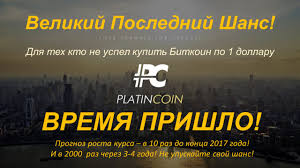 Сейчас очень хороший период!!! ПРЕДСТАРТ! СТАРТ 1 ИЮЛЯ 2017года!!! Криптовалюта платинкоин уже почти вся добыта, на старте она будет стоить 10 центов, затем цена будет повышаться