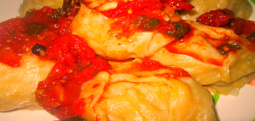 Манты с соусом сантан