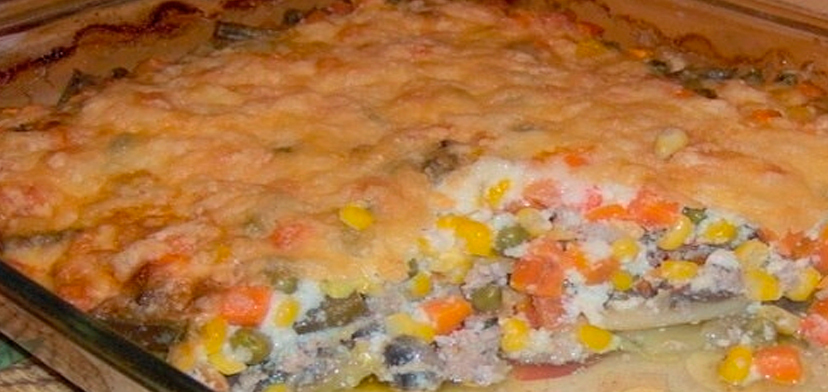 Сытная запеканка с фаршем и овощами