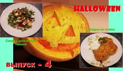 В этой записи, вы можете посмотреть сразу два блюда, а именно салат и оладьи из тыквы.