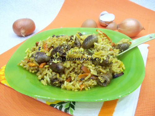 Рецепт плова с куриными сердечками