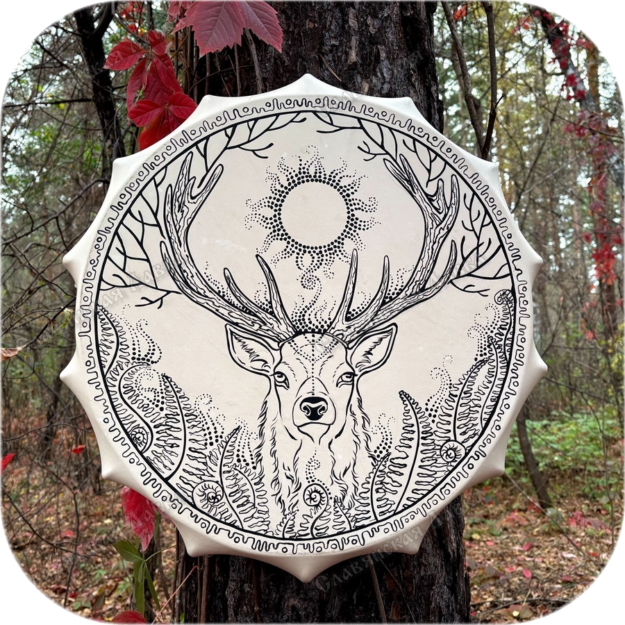 ШАМАНСКИЙ АЛТАЙСКИЙ БУБЕН «ПРОВОДНИК»Благодарность мастеру 9790Бубен с изображением традиционного животного для шаманов Алтая – оленя