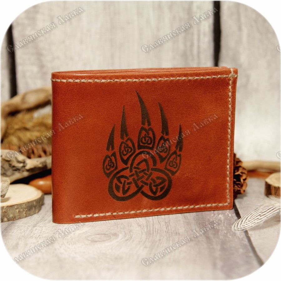 КОЖАНОЕ ПОРТМОНЕ «ПЕЧАТЬ ВЕЛЕСА»Благодарность мастеру 2299Портмоне кожаное славянское «Печать Велеса»