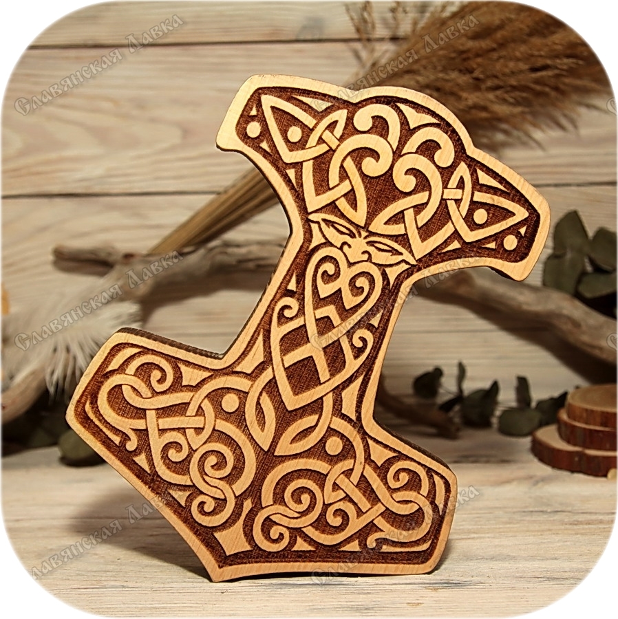 ПАННО «МОЛОТ ТОРА» (АЛТАРНЫЙ)Благодарность мастеру 2390Представляем вашему вниманию искусно выполненный молот Тора, воплощённый в алтайском кедре