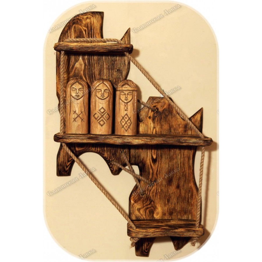 ПОЛКА-КУМИРНЯ ПОД СТАРИНУ (СРЕДНЯЯ СЛОЖНАЯ)Благодарность мастеру 3290Полка для кумиров славянских богов из сосны в трёх уровнях