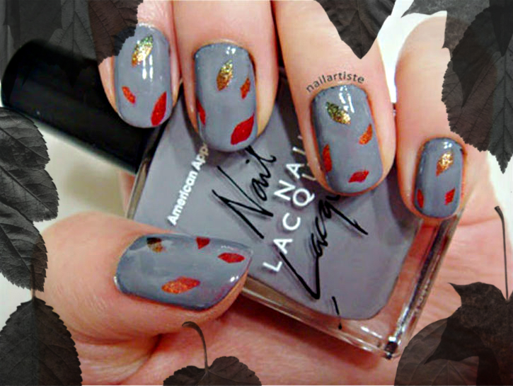 Несколько простых листьев на серого цвета ногтях идеально подходят для осени.