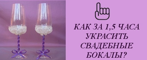 Оформление свадебных бокалов кружевом и лентами своими руками